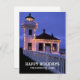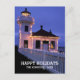 Lighthouse at Night with Christmas Lights Holiday Postcard