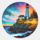 Beautiful white Lighthouse and keepers house sitting high on a rocky hill at Sunset