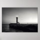 This black and white photo features the lighthouse landscape at sunset, Mallorca, Spain.