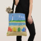 Stay in a beachy state of mind all the time with this personalized tote bag, featuring a lighthouse and beach chairs ready for a gathering. Personalize with any name. Great as a beach bag!