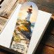 Bookmark featuring a watercolor painting of a lighthouse at sunset. Beautiful for a beach house or anyone who loves the coast. The label image and the logo are optional, so you can use it both for a business and as a private person.