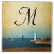 Lighthouse Beach Scene Monogram Display Tile