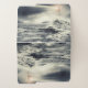 This photo features a lighthouse beacon shining with stormy weather and crashing waves.