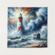 This dynamic expressionist tapestry captures the raw energy of a stormy seascape, with a lighthouse standing resilient amidst the turmoil. The scene is alive with swirling clouds and waves, depicted in bold, impasto brushstrokes that convey the movement of the wind and water. A spectrum of vibrant colors explodes from the lighthouse beacon, symbolizing hope and guidance through life's tumultuous journeys. A small, weathered seaside cottage huddles near the lighthouse, adding a touch of serenity to the chaotic beauty of the scene. Birds caught in the tempest swoop across the canvas, adding to the sense of motion. This piece is a testament to the enduring spirit of maritime life and would make a striking statement in any space that values the power and beauty of the sea.