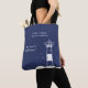 Elegant & simple navy blue tote bag with an illustration of a lighthouse!