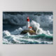 Lighthouse Ocean Storm Majestic Powerful Wave Poster