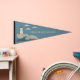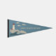 This personalized souvenir pennant is perfect for your seaside cottage or other beach house. It has a simple nautical style illustration of a lighthouse in red and cream or ivory. The lighthouse stands on a rocky shore with waves crashing below and cream colored clouds in the sky. The graphic is set against a soft French blue background.