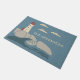 This personalized doormat is perfect for your seaside cottage or other beach house. It has a simple nautical style illustration of a lighthouse in red and cream or ivory. The lighthouse stands on a rocky shore with waves crashing below and cream colored clouds in the sky. The graphic is set against a soft French blue background.