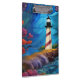 Beautiful red and white striped Lighthouse on a rocky outcropping