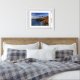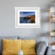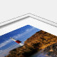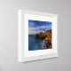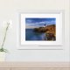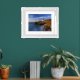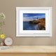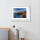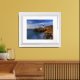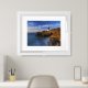 Framed and ready to hang this poster is shown with a white faux mat look and a photo print of a beautiful ocean cliff lighthouse scene.
