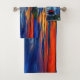 I ordered these towels because I am getting ready to stage my house for sale and wanted some really pretty towels to show off the bathroom. These are an absolutely perfect match for the teal walls and I could not be more pleased. Not only do they look beautiful, they also seem to be very good quality. They are different than any other towels I've had, as the surface fibers are not looped. I love that because I have never liked how most towels have loops that snag and pull no matter how careful you are. I pre-washed them and they came out beautifully. The towels are generously sized and they don't feel flimsy at all. I did not read the description well enough to understand I was paying as much as I was paying for just exactly what was pictured: not a set of two, but a single towel, hand towel and washcloth, so they are way more expensive than I thought (which was a lot, considering). However, I still love them enough that I went ahead and ordered a single additional bath towel so that I would have an actual set, but will need to buy a couple of solid color washcloths. Pricing is weird, because a single wash cloth is priced higher than a large bath towel?? Anyway, if you can afford them, these towels are fantastic. I would never pay this much except to show off a house for sale, but now that I've done it I will love them in my new home as well. Gorgeous! Vibrant Colors and exactly as pictured,..maybe evern better!