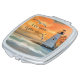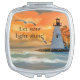 Compact mirror with a painting of a lighthouse and seagulls with a beautiful sunset in the background, and fully customizable text which says, "Let your light shine!" Personalize with your name or favorite verse or saying, or keep it "as is." Make it your own.