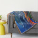 A quality printed throw has its advantages. This is a much finer weave throw than its loopier cousins, and though lighter, it is worth the investment for custom room accessorizing. The back is much prettier than the typical brown, and the fringe on the long sides very vivid, the selvage nicely done. Before photographing, I washed the throw in cold water, delicate, with a thicker woven throw the same size. On tumble dry low, this throw was dry in half the time as the other. This is a very practical quality if you use throws for furniture covers or to wrap up in frequently. The sleekness of the fabric makes it a great layer for accenting or protecting without the feeling of sitting on too much stuff. Perfect for napping or when you feel a light chill coming on. The color printing is beautiful and on this fabric, matched the design and color of my Photoshop image. This is an advantage for blending room fabrics and colors. The fringe on the short sides prints the colors from the design image and therefore varies from the side fringe. I streaked a white fractal line through the plaid pattern to give the illusion of weaving. This printed as crisp as an illusory thread, and put some white in the short side fringe, showing another advantage of print vs loomed- for artistic purposes, line lines, detail, and color integrity can be planned and preserved. My loomed throws have color limitations and more of a needlepoint texture. Print throws reproduce an exact image. The throw felt a little stiff straight out of the package, but this went away in the first delicate wash. Of course I searched the wash water for ink or bleeding and there was none.