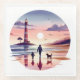 Lighthouse Sunset Walk Coastal Scene Glass Coaster