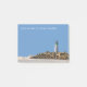 Coastal lighthouse theme sticky notepads in a clean minimalist design with image of a lighthouse at the beach coastline and lots of message space long with a from the desk of you can personalize with your name, business name, or Church name. Designed as notepads you can use to leave notes for customers, coworkers, associates, or inter office communication.
