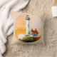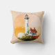 Pretty throw pillow features Lighthouse at sunset circular watercolor , neutral background