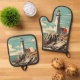 Lighthouse Vintage Poster Oven Mitt & Pot Holder Set