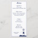 Elegant & simple wedding menu with an illustration of a lighthouse in navy blue tones for a marine and nautical theme wedding!