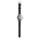 Has heft and feel of expensive stainless steel quartz watches. Good band with safety catch. I removed links, which is easy because engraved arrows show direction to push the linking pins. As always by this seller, the image (a railroad logo) is a perfect reproduction of my emailed image, and is precisely spaced and aligned.