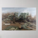 Lightning at Bourheim by Larry Selman Print. Operation Queen, Bourheim, Germany, November 26, 1944. Technical Sergeant Joseph A. Farinholt, known as “Lightning Joe” to his buddies, had already earned three Silver Stars in the five and a half months since his unit had landed on Omaha Beach on June 7, 1944. A Guardsman from Baltimore, Maryland, Farinholt was acting platoon leader for the anti-tank platoon of Headquarters and Headquarters Company, 3rd Battalion, 175th Infantry, 29th Infantry Division when he earned his fourth and final Silver Star in late November, 1944. No known enlisted man in the Army earned four Silver Stars during the entire war, much less over such a short span of time. On November 26, 1944 the 175th Infantry was spread thin around the outer perimeter of the town of Bourheim, which it had captured three days earlier. For the sixth time in those three days, a German armored column attempted to recapture the town, a key to their defense of the strategic city of Julich on the Roer River. The enemy attack opened with such an intense artillery barrage that the 29th Division’s After Action Report cites as it as “…the worst suffered by the division during the war.” Then the German infantry and their supporting tanks pushed forward. Men in the outlying areas fell back toward the town and it looked as though the enemy might finally break through. Farinholt quickly went into action. One of his three 57 mm antitank gun crews, after firing several rounds at the enemy, all became casualties when a German shell hit a tree near their position. Knowing that the 57 mm gun did not have the penetrating power to pierce a Tiger’s armor, Farinholt loaded, aimed and fired at the tread of the lead Tiger tank, disabling it and halting the advance of the column. However, the tank returned fire with armor-piercing machine gun bullets, wounding Farinholt in more than 20 places and shattering the bones in his right leg below the knee . Despite his wounds he managed to drag himself to his jeep and drive to the battalion headquarters to alert them of the strength and direction of the German attack. Weakened by his injuries and unable to control both the clutch and the gas pedal, Farinholt crashed his jeep into the Headquarters building but refused first aid until he gave his report. Because of his actions and those of his platoon, the German advance was stalled for almost an hour and then diverted to another sector, buying time for the 29th Division to move troops and summon air support to successfully defeat the attack. The Germans never recaptured Bourheim. Farinholt’s wounds were so severe that he was returned home and spent nearly two years in the hospital. Though he lived nearly 60 more years, he never fully recovered from his injuries. He is depicted here as he fought the war, with several days’ growth of beard, toting his preferred weapon, the M-3 “Grease gun” on his back, and wearing the boots he “liberated” from a dead German soldier in Normandy because they were far more comfortable than the U.S. issue gear. Farinholt’s remarkable bravery was emblematic of the courage displayed by over 300,000 National Guardsmen who were called to active duty during peacetime in 1940 and 1941, more then doubling the size of the Army before America entered World War II. While some 75,000 Guard enlisted men went on to become officers during the war, those who – like Farinholt – remained in the enlisted ranks served an equally valuable role by providing the solid core of experienced non-commissioned officer leadership that every unit needs to be successful in combat. All Prints are presented & displayed at the largest size/resolution available. The system will prevent you from choosing a size larger than the image is capable. Range through the sizes available from smallest to largest and choose your size of choice.