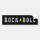 Unqiue steely silver rock and roll design complete with a bright yellow lightning bolt.