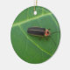 This small lightning bug (also known as a firefly) crawls slowly on a leaf. The orange and black body makes a nice contrast with the green of the plant.