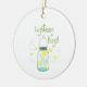 Lightweight, smooth, pure white ornament with nice sheen. Perfect size to be seen from across the room ... and to attract closer inspection! Price was great for ordering enough for the whole family! Clear, bold black design just as requested. Matches the order exactly. Just so nice!