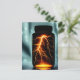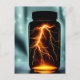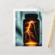 Cool AI generated digital art postcard features a dramatic glowing lightning strike inside a closed jar.