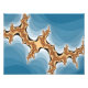 An abstract art design of lightning against a blue background.