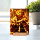 Zenitsu Agatsuma from Demon Slayer is a striking character with a bold yet vulnerable personality. He has bright yellow, lightning-patterned hair and wears a signature yellow-orange haori adorned with white triangles. Though often cowardly and anxious, he unleashes incredible speed and power when unconscious, embodying the raw force of his Thunder Breathing technique. A high-quality Giclée print of Zenitsu could capture his electrifying presence—perhaps mid-attack, enveloped in crackling golden lightning, or in a contemplative moment, illuminated by warm, dramatic lighting.