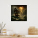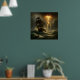 Artwork depicting a dramatic scene of a ship in a lightning storm. A lone sailing ship battles towering waves under a turbulent sky ripped apart by a blinding flash of lightning. The golden light of the strike illuminates the ship's struggling form and the churning, dark waters below. This artwork captures the terrifying beauty and immense force of a storm at sea, a testament to both the vulnerability and resilience of those who dare to sail. The choppy waves reflect the dramatic light, adding to the sense of chaos and danger. A truly atmospheric piece that brings the power and spectacle of a lightning storm over the ocean to any room. This artwork can be customized, printed, and or downloaded.