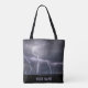 This amazing tote bag features a photo of an impressive thunderstorm over the ocean with lots of lightning bolts lighting up the night sky. Personalize it with your own name/text, change the font, or add things to your preference, or delete the text altogether if you just want to enjoy the stunning image. Doing shopping was never so much fun with this unique, reusable bag!