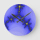 This awesome clock design was inspired by my love of thunderstorms. There are three forks of bright yellow lightning coming from the centre of the layers of subtly coloured blue clouds.