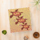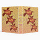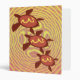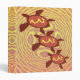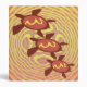 Diagonal row of three sea turtles in diminishing size. Dark red bodies and lighter orange-red shells, with a yellow lightning pattern. Sea turtle art.