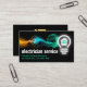 An all black cover features a colorful electrical lightning wave that powers up a lightbulb. Near the base of the card is the business name alongside its contact details in cyan blue.