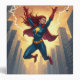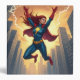 A comic book style superhero, Lightning Woman, is shown in midair with lightning bolts streaming off her body. Dynamic action, positive female action role model for girls. Perfect for back to school.