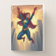 A comic book style superhero, Lightning Woman, is shown in midair with lightning bolts streaming off her body. Dynamic action, positive female action role model for girls. Perfect for back to school.