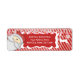 Holiday return address labels with a red and pink diagonal stripe background, a set of tangerine red and pink lights, snowflakes, a deer silhouette, Santa Clause, and a red frame where you can easily add your name and address to customize.