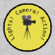 Perfect patch for those that love cinematography, acting, or just going to the movies! Customizable Lights! Camera! Action! text with vintage movie camera silhouette on yellow background