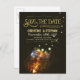 Special and unique save the date postcard with beautiful whimsical mason jar with glowing lights - fireflies. Modern yet vintage save the date perfect for rustic country wedding themes.