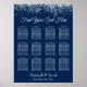 This simple, elegant design features a plain navy blue background. The top has been embellished with festive sparkling bokeh lights. Simple, elegant fonts can be changed if you prefer. All layers were added separately and left unlocked to give you much design control. This setup has 12 tables laid out in 3 rows of 4. Use template fields to add your own details.