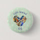 Cute little pin-back button which says light-hearted girl. with a watercolor design of feathers in a heart shape. Set on a vintage style mint green background with faded pink and white polka dots.