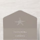 This wedding design is a perfect blend of elegance and beachy vibes. The main feature of the design is a small white starfish motif that sits gracefully in the center of the taupe brown colored background. The starfish motif is intricately designed and adds a touch of nature to the invitation. The typography used is classic white, which adds a touch of sophistication and ensures that the text is easy to read. The font style used is clean and modern, creating a timeless look that will never go out of fashion.