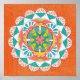 A soft, pastel floral mandala pattern in teal and coral. Artist: Harriet Sussman