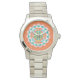 A soft, pastel floral mandala pattern in teal and coral. Artist: Harriet Sussman