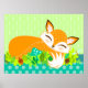 A sweet sleepy fox cub on a bed of leaves... great as decoration in a nursery, child's room or anywhere you need a fun pop of color and cuteness - also makes a great gift idea! {{Click CUSTOMIZE to personalize with your own text}}