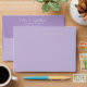 Lilac wedding invitation envelope with return address at the front and lavender background color inside decorated with white script couple initials