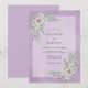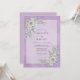 The design showcases a wash of soft purple tones adorned with delicate watercolor illustrations. Pale pink roses, silvery green eucalyptus, and purple lavender sprigs are arranged artistically. This botanical motif creates an airy and romantic aesthetic suitable for a spring or summer theme.