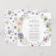 Lilac Blue Floral Watercolor Baptism 1st Birthday Invitation