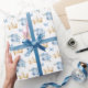 Lilac Blue Flowers and Gold Crowns Wrapping Paper